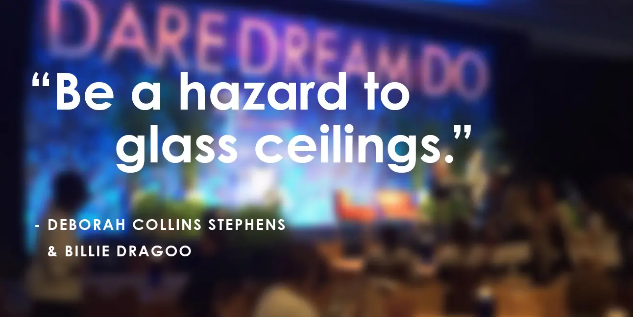 Conference organizers Deborah Collins Stephens and Billie Dragoo spoke about the conference’s history before introducing keynote speaker, Arianna Huffington. Inspiring, on point and feminist, Stephens and Dragoo encouraged the 1,300 women in the room to be hazards to glass ceilings. They parted with a requirement for all attendees: “If it’s not broken, break it.”