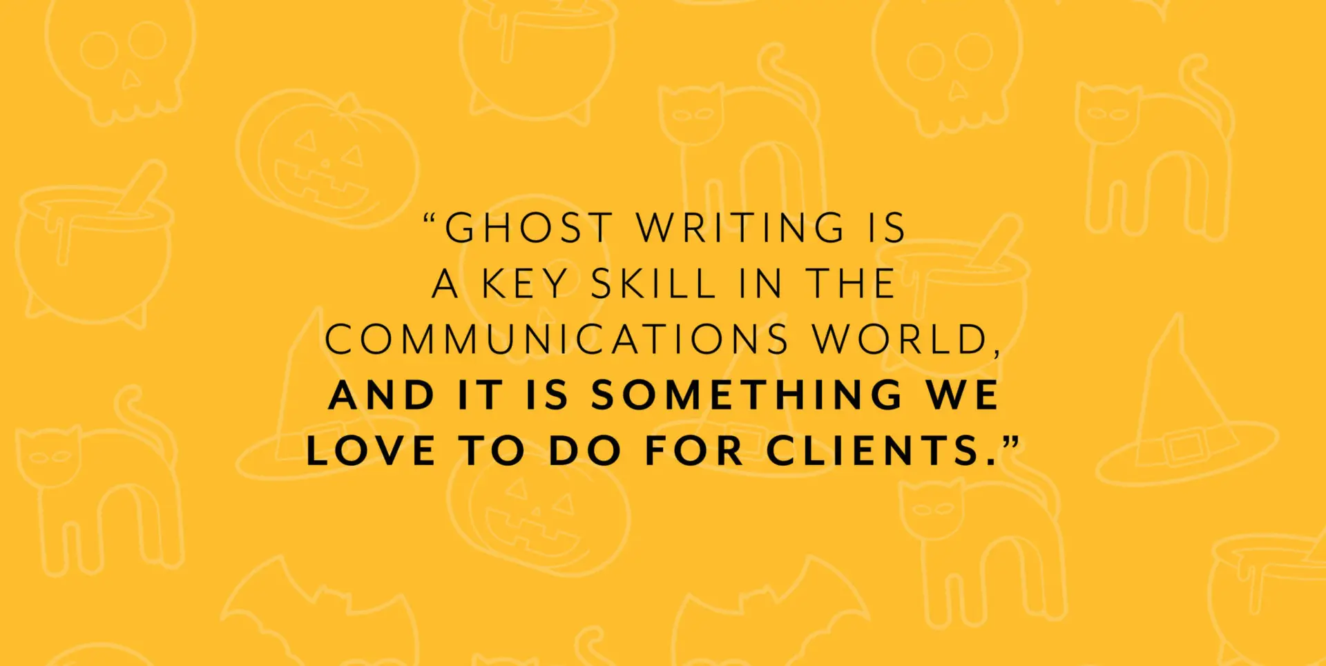 In our world, when we talk about ghosts and it isn’t around Halloween, we are usually talking about writing. Ghostwriting is a key skill in the communications world, and it is something we love to do for clients.