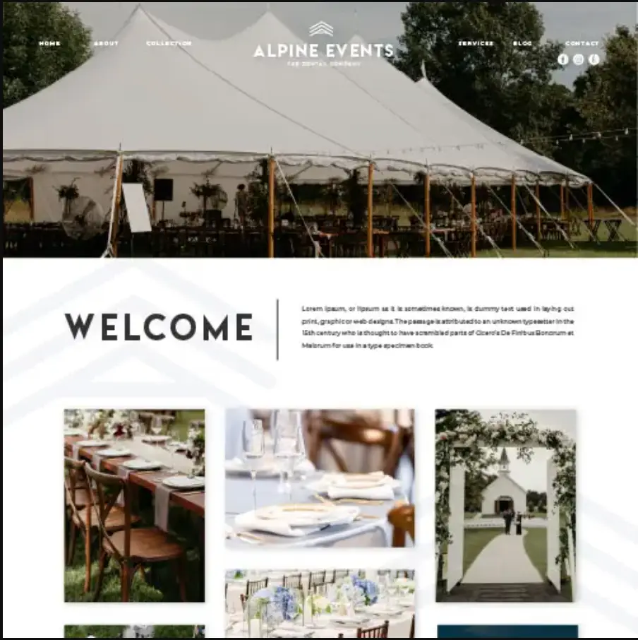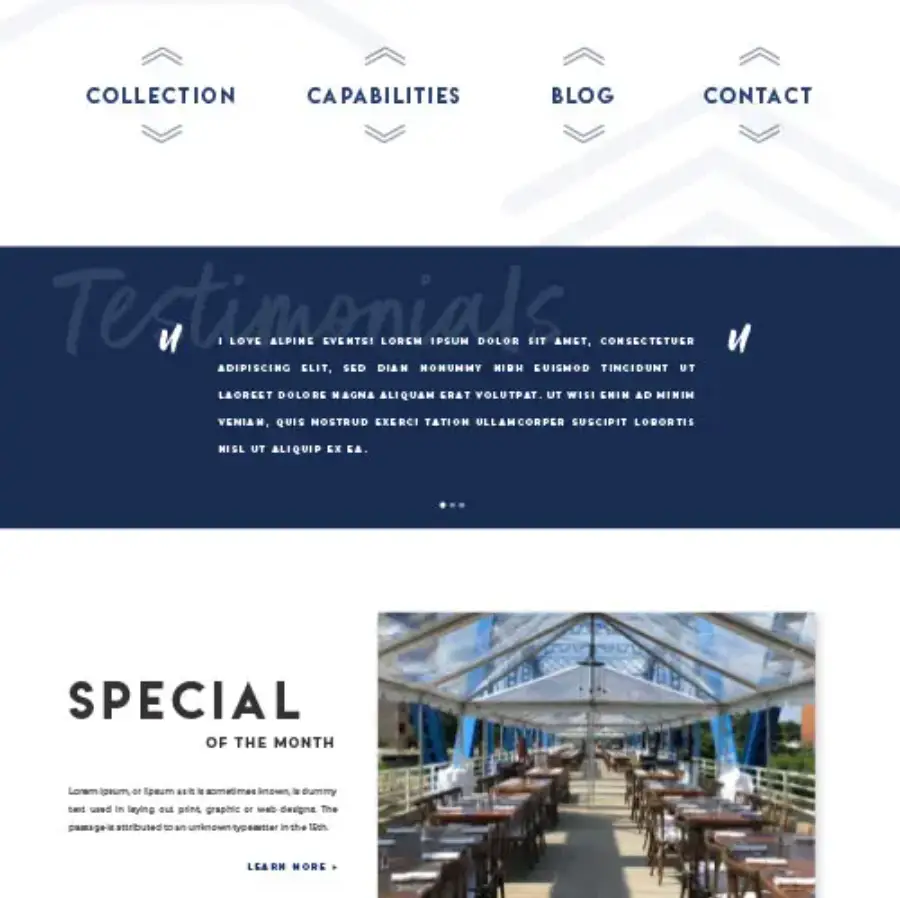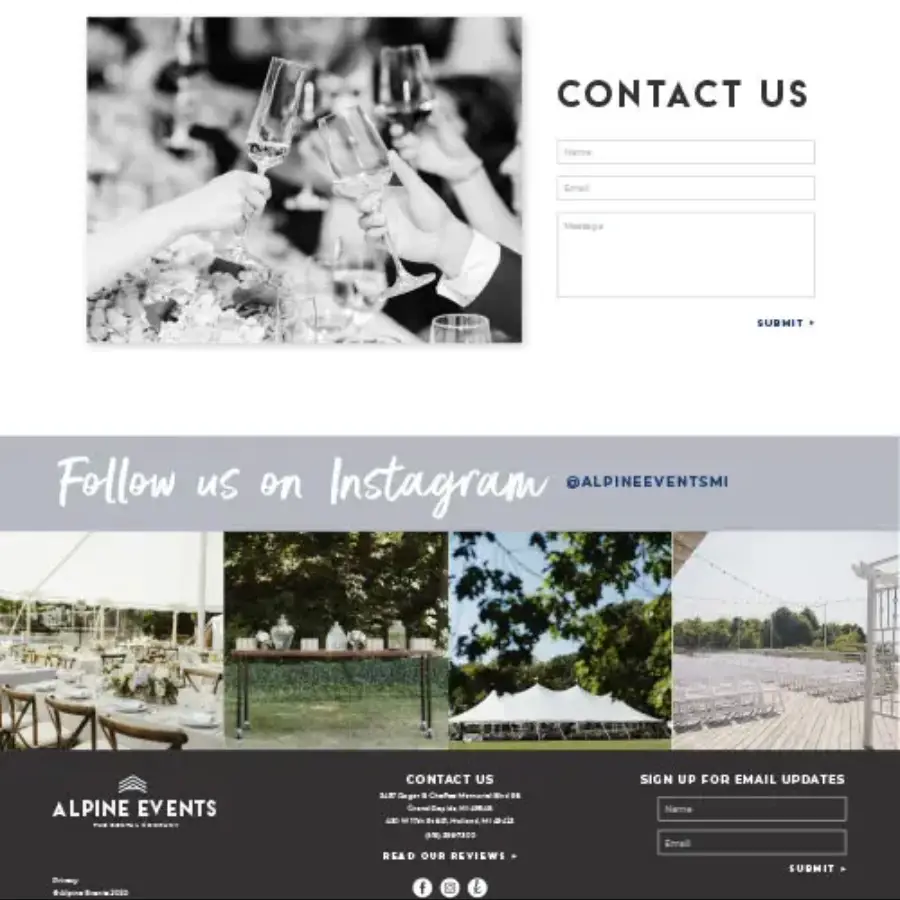 We wanted the website to stand out from all the other script-font-on-white bridal sites out there. They’re boring and Alpine Events is not.
